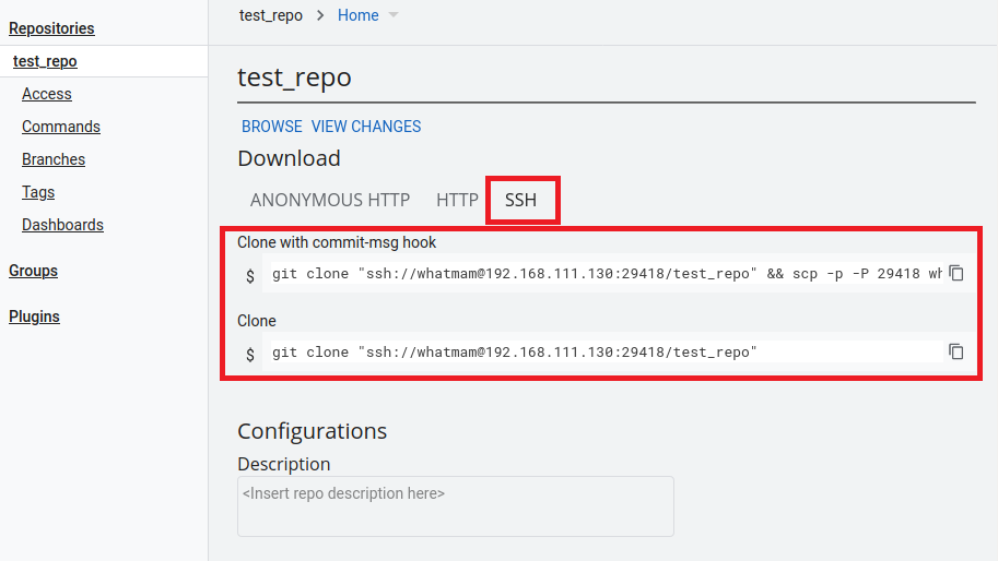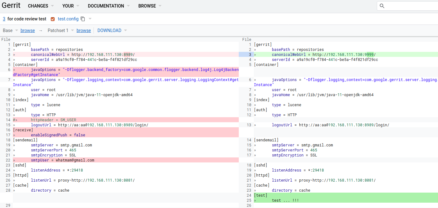 주석처리된 부분이 Gerrit 설치 후 추가된 부분이다.