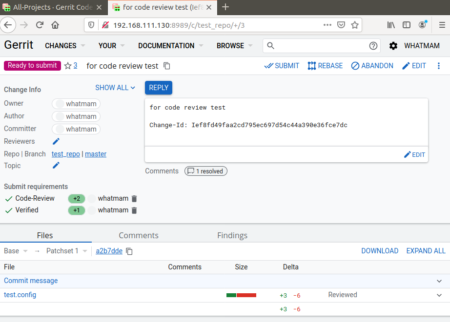 [label "Verified"] 같은 경우 gerrit 설치할 때, Install Verified label [y/N]? y 부분으로 생성되었다.